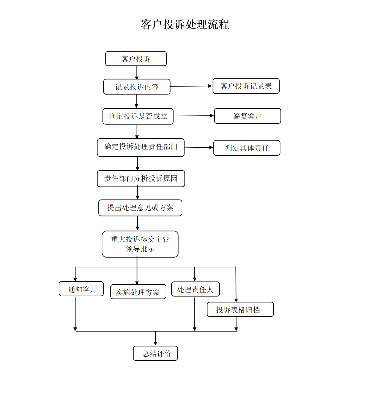 (五)归档:确认《客户投诉处理单》各项内容已填写完整,对客户投诉信息进行整理归档,投诉相关的手写或电子文档整理保存。