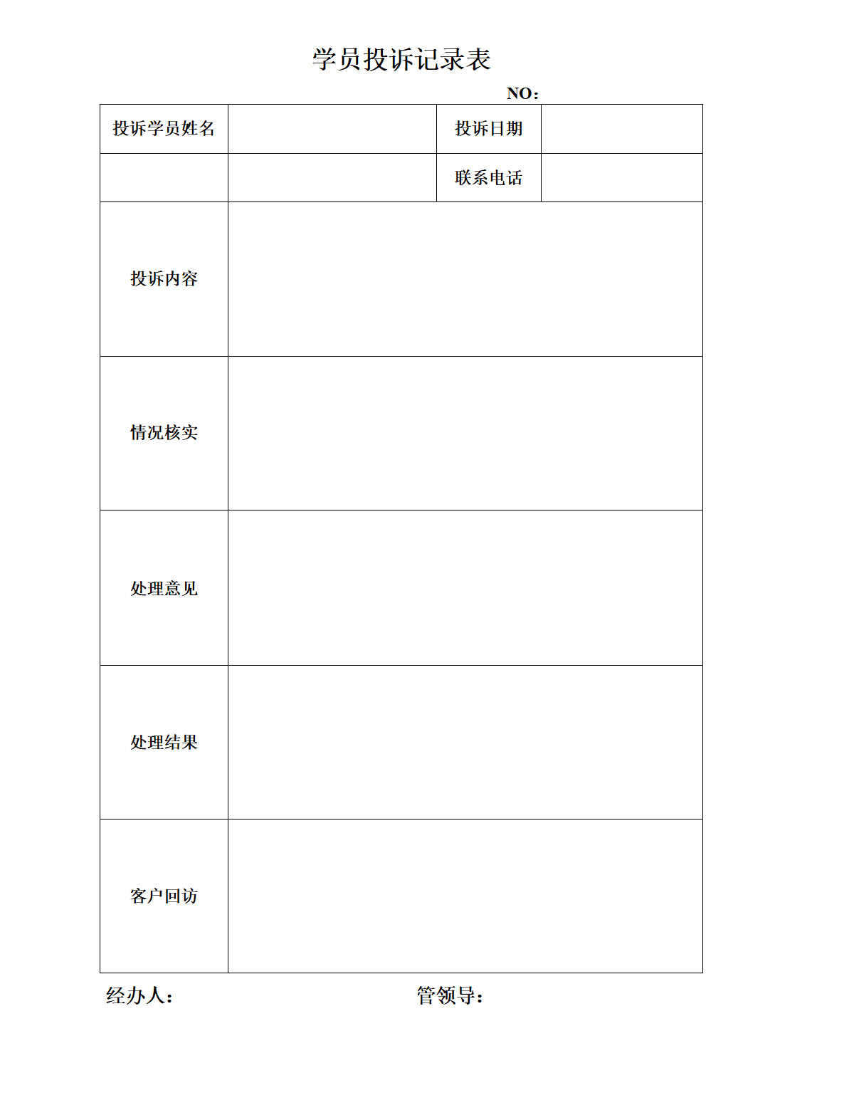 学员投诉记录表